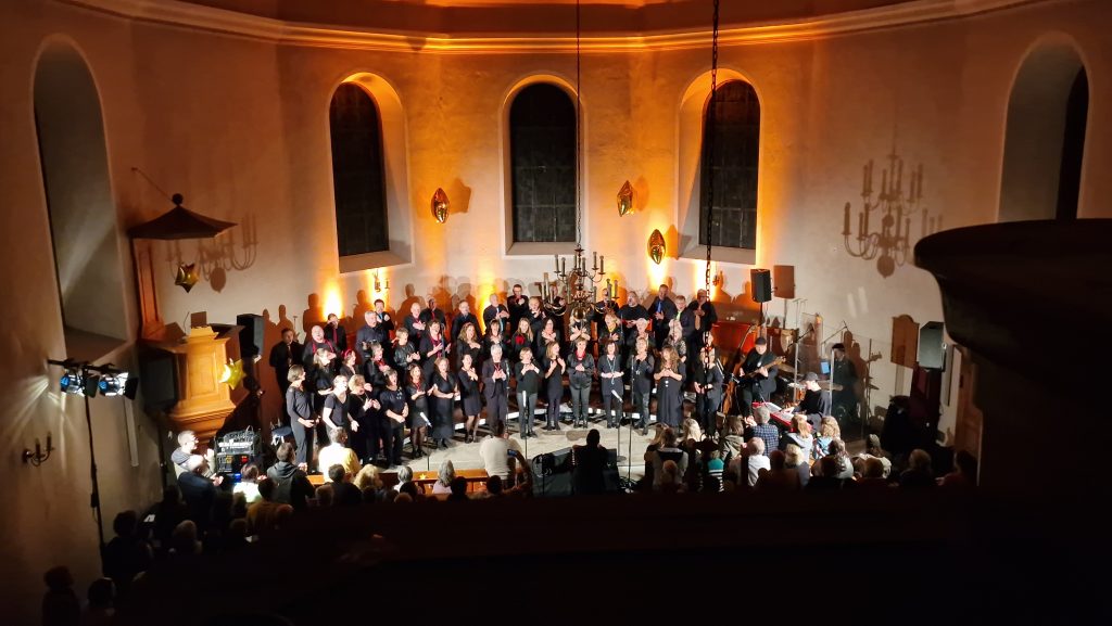 50 Sängerinnen und Sänger des Gospel- und Musicalensembles Heaven´s Gate e.V., dirigiert von Luca Rodrigues.